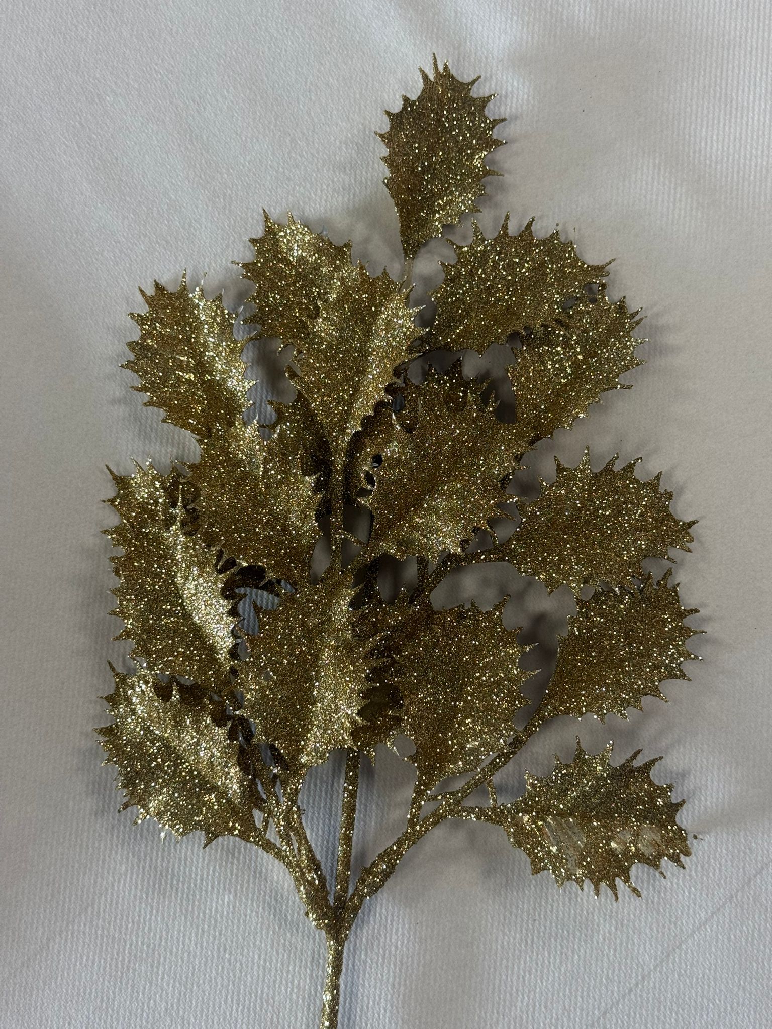 Houx doré. Branche artificielle. Décoration Noël. Paillettes. Accessoire sapin. Décoration fêtes. Noël chic. Décorations hiver.