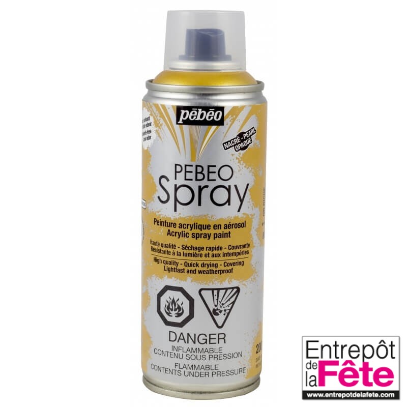 Peinture Acrylique or riche nacré décorative en spray de 200ml de la nouvelle gamme decoSpray de Pébéo pour une utilisation intérieure comme extérieure sans odeur.