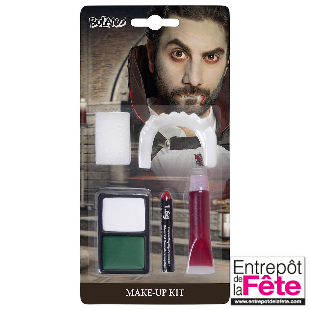 Kit de maquillage Vampire (dents de vampire, tube de faux sang, maquillage gras et éponge)