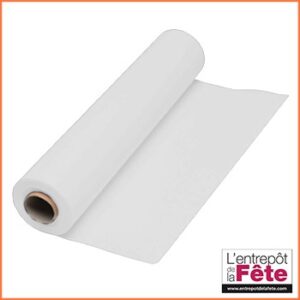 Descriptif : Nappe rouleau non tissé, papier renforcé de fibres longues synthétique 40g/m2. A usage unique de qualité professionnelle. Elles sont en matière non tissé fabriquée à partir de ouate qui leur donne à l’aspect et le tombé du tissu. La largeur du rouleau est de 1,20 mètres