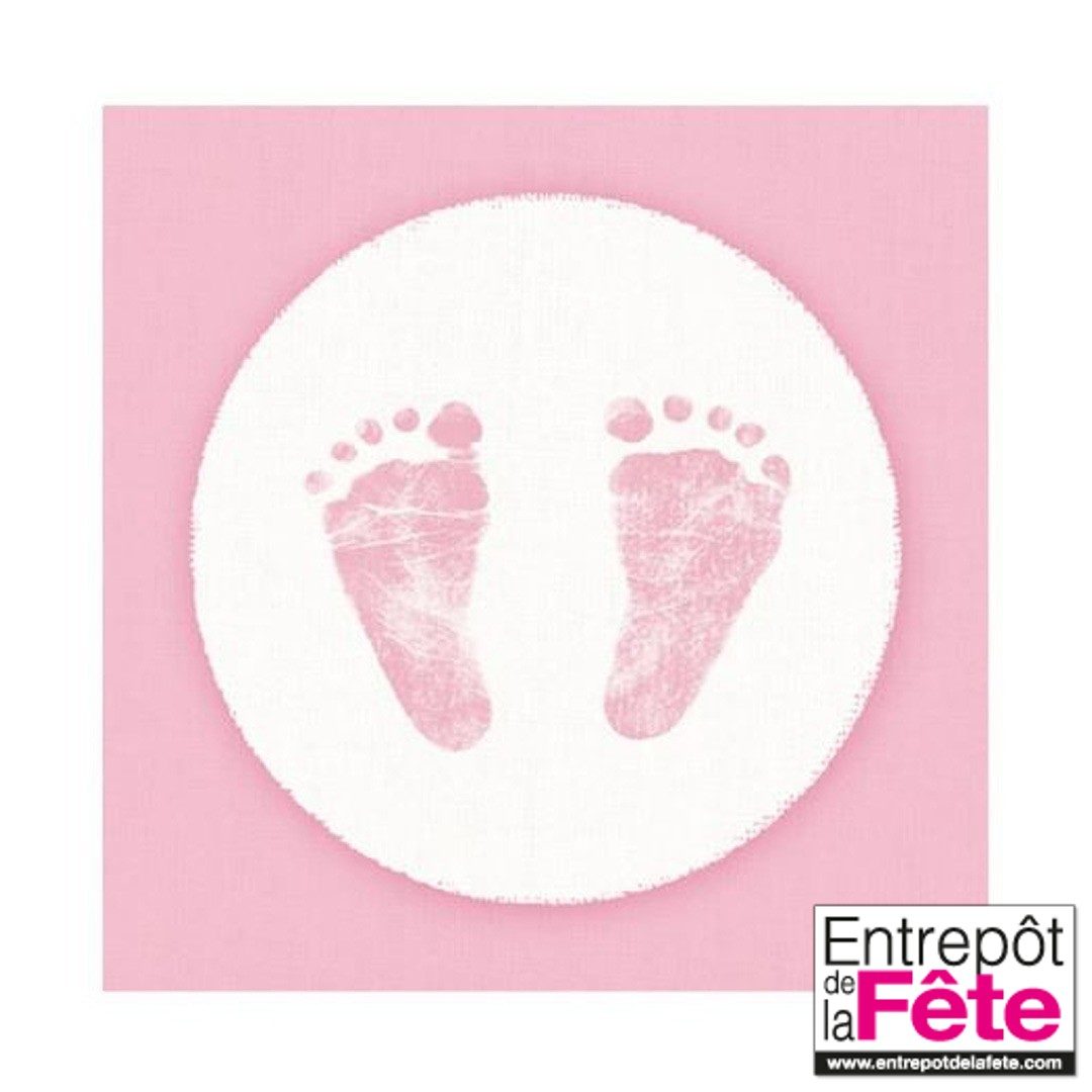 Descriptif : Serviettes pieds bébé rose. Parfaites pour votre babyshower ou pour un baptême. Vendues par paquet de 20.